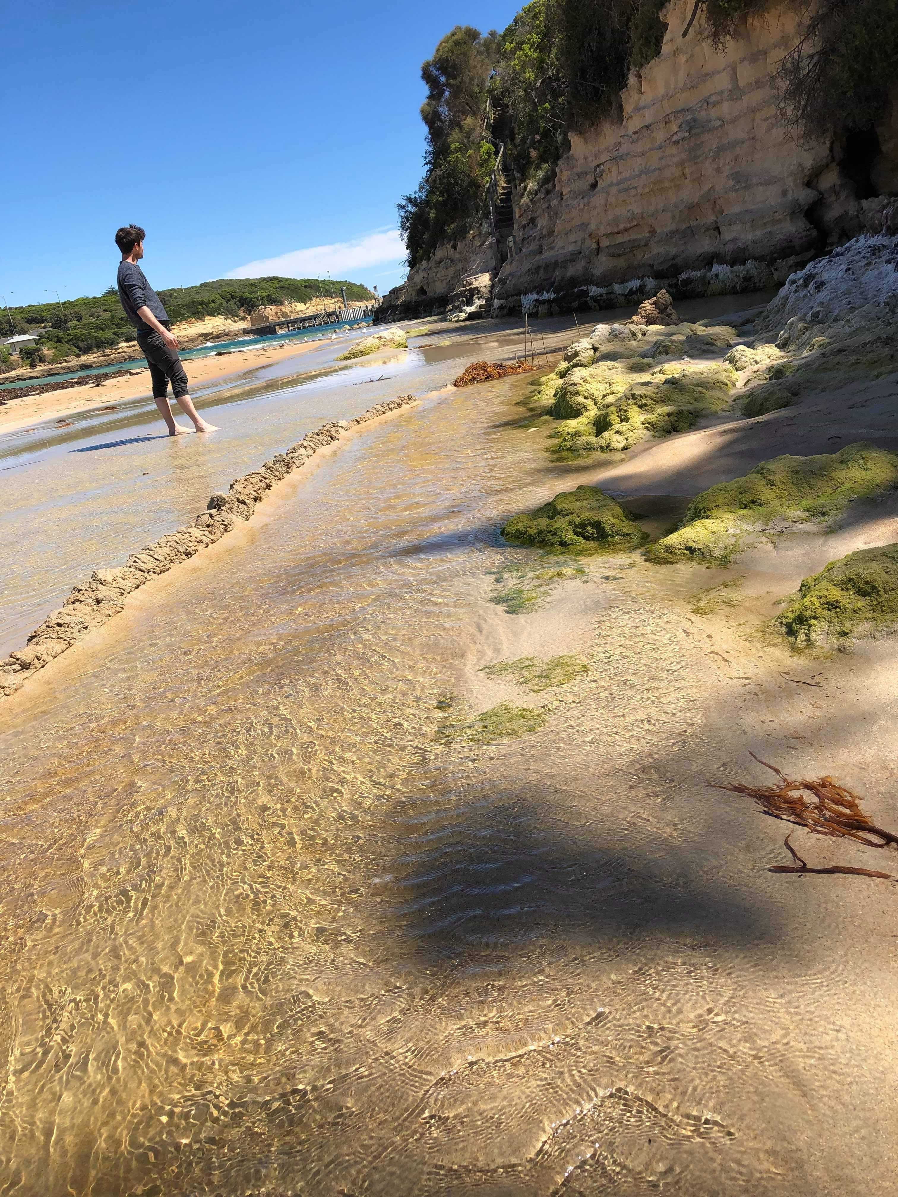After the flight we visited Port Campbell and went for a trek on the beach. Mark and Tristan climbed some rocks and Mark built a dam wall, redirecting the water around a rock.